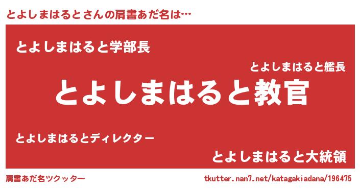 | 男性向けラノベタイトル風あだ名 | 『魔弾の王ととよしまはると』 |