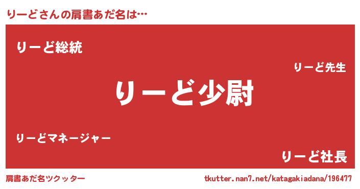 | 男性向けラノベタイトル風あだ名 | 『転生したらりーどだった件』 |