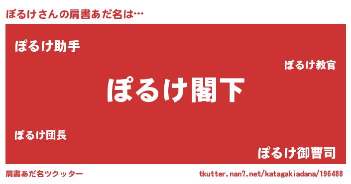 | 男性向けラノベタイトル風あだ名 | 『Re:ぽるけから始める異世界生活』 |
