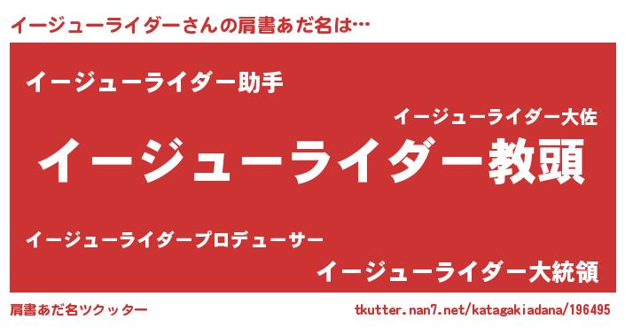 | 男性向けラノベタイトル風あだ名 | 『誰もが恐れるあのイージューライダーが、ぼくの専属メイドになるようです。』 |
