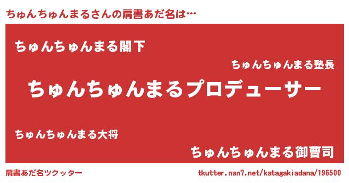 | 男性向けラノベタイトル風あだ名 | 『ちゅんちゅんまるに滅ぼされるだけの簡単なお仕事です』 |