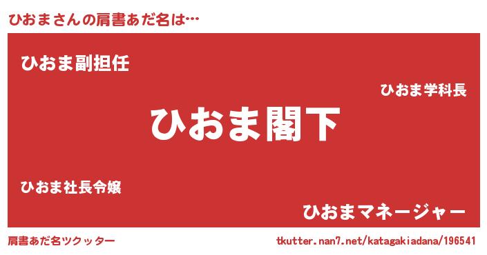 | 男性向けラノベタイトル風あだ名 | 『Re:ひおまから始める異世界生活』 |
