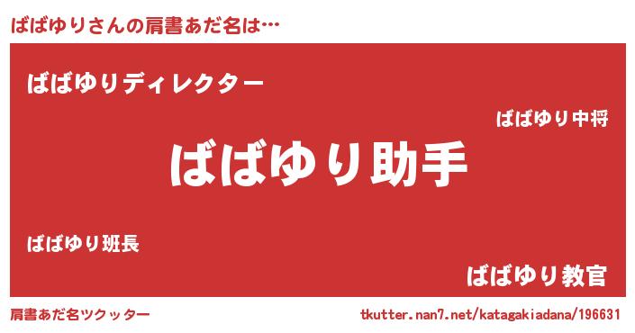| ヒーロー風カッコイイあだ名 | 『正義の使者ばばゆり』『仮面ババダー』 |