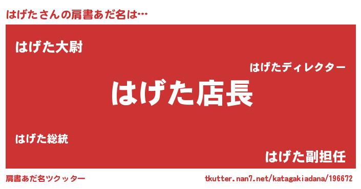 | ヘコむあだ名 | 『はげにゅー』『はげた(爆)』 |
