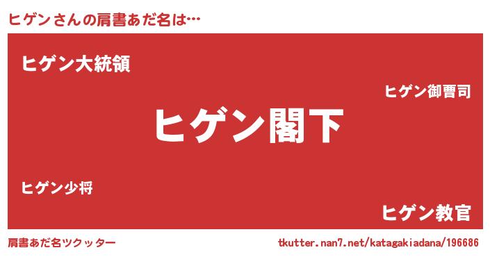 | 男性向けラノベタイトル風あだ名 | 『Re:ヒゲンから始める異世界生活』 |