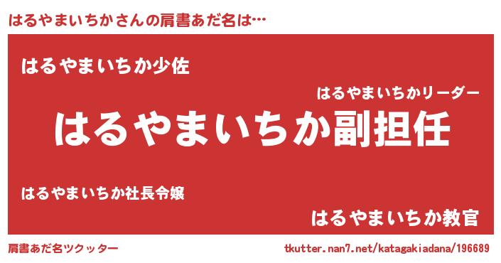 | ヘコむあだ名 | 『はるやまいちか(遠い目)』『はるお』 |