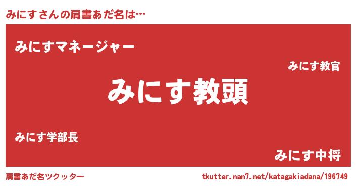 | 意味不明あだ名 | 『永久保存みにす』『たけのこ科みにす属』 |