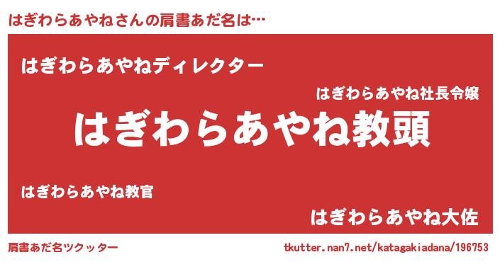 | 恥ずかしいあだ名 | 『はぎちん』『プリティーはぎわらあやね』 |