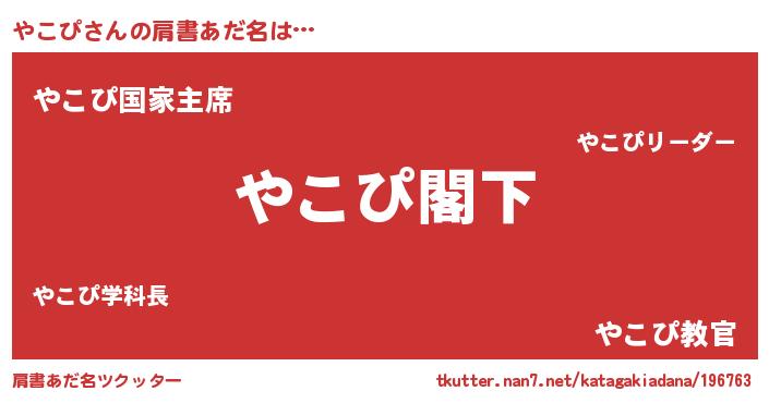 | 男性向けラノベタイトル風あだ名 | 『Re:やこぴから始める異世界生活』 |