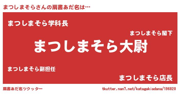 | 男性向けラノベタイトル風あだ名 | 『マツシマソラスレイヤー』 |