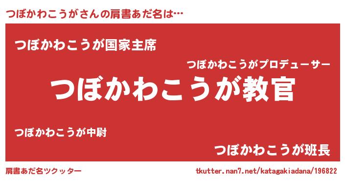 | 意味不明あだ名 | 『住所不定無職つぼかわこうが(86歳)』 |