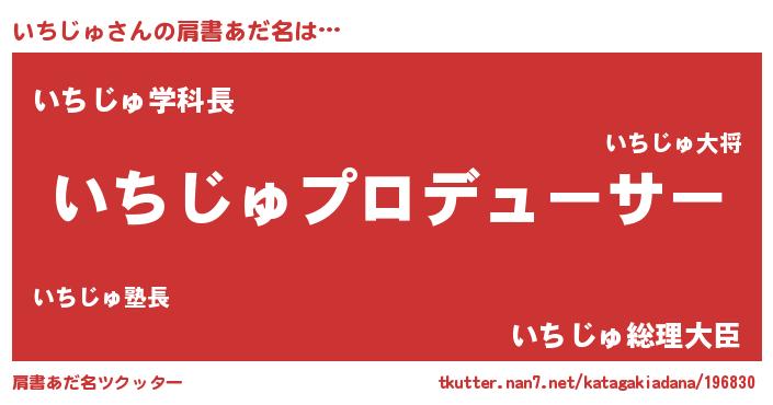 | 男性向けラノベタイトル風あだ名 | 『いちじゅに滅ぼされるだけの簡単なお仕事です』 |