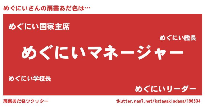 | 意味不明あだ名 | 『めぐにいフォーエバー』『自称めぐにい』 |