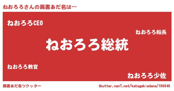 | 男性向けラノベタイトル風あだ名 | 『Re:ねおろろから始める異世界生活』 |