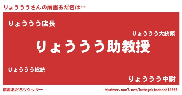 | ヒーロー風カッコイイあだ名 | 『正義の使者りょううう』『仮面リョダー』 |