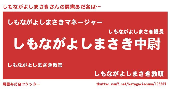 | 可愛いあだ名 | 『しもぷりん』『しもながよしまさきママ』 |