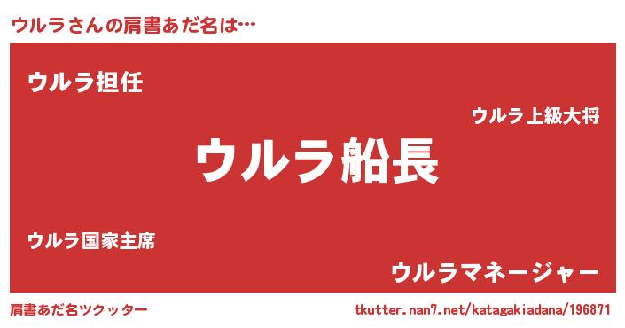 | 男性向けラノベタイトル風あだ名 | 『緋弾のウルラ』『はたらくウルラさま!』 |