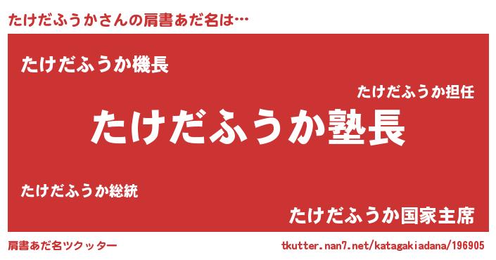 | 男性向けラノベタイトル風あだ名 | 『たけだふうかの嫁は女の子じゃないと思った?』 |