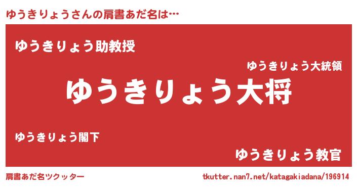 | 男性向けラノベタイトル風あだ名 | 『転生したらゆうきりょうだった件』 |