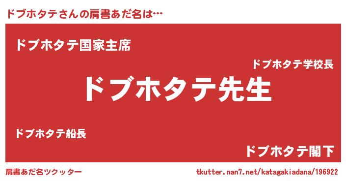 | ファンタジー風あだ名 | 『ドブディッシュ』『ゼドブトゥ』 |