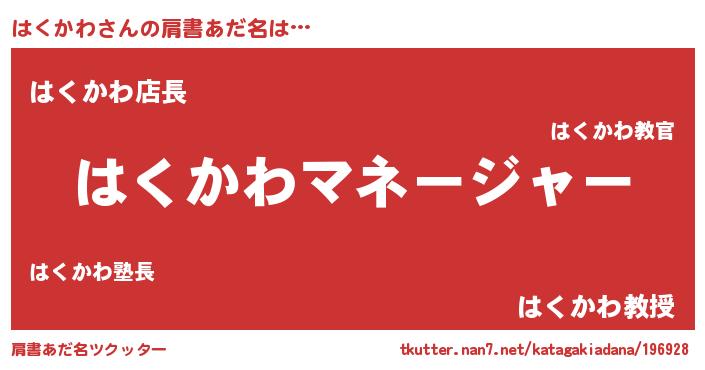 | 男性向けラノベタイトル風あだ名 | 『はたらくはくかわさま!』 |