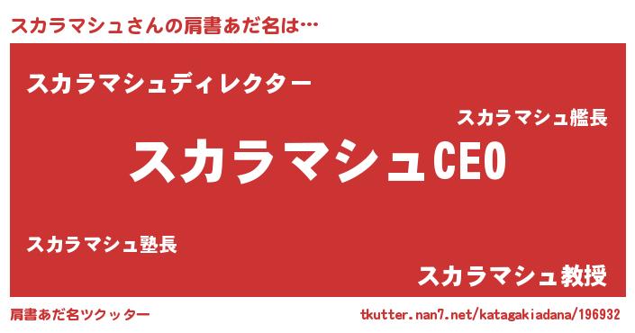 | 恥ずかしいあだ名 | 『プリティースカラマシュ』『スカちん』 |