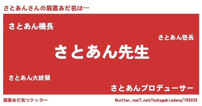 | 意味不明あだ名 | 『永久保存さとあん』『自称さとあん』 |