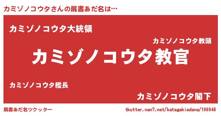 | 男性向けラノベタイトル風あだ名 | 『この素晴らしい世界にカミゾノコウタを!』 |