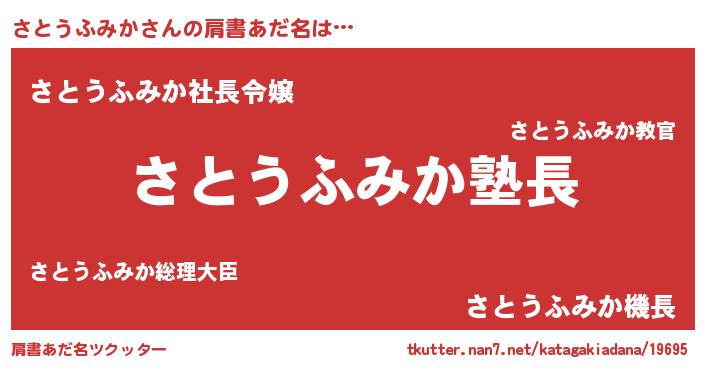 | 意味不明あだ名 | 『とにかく怪しいさとうふみか』 |