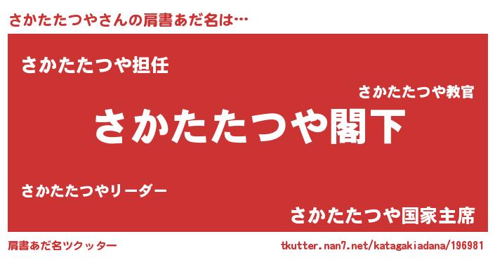 | 意味不明あだ名 | 『自称さかたたつや』 |