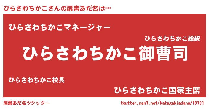 | ヒーロー風カッコイイあだ名 | 『スーパーヒラサワチカコ』 |