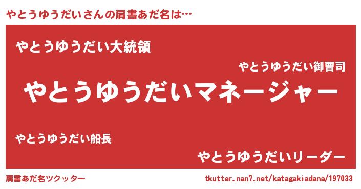 | ファンタジー風あだ名 | 『エターナルヤトウユウダイー』 |