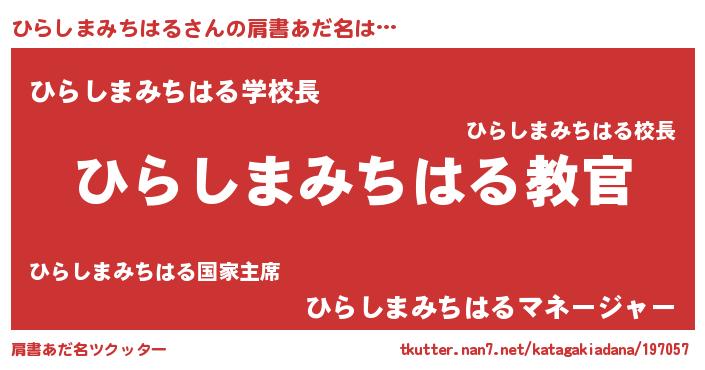 | ヒーロー風カッコイイあだ名 | 『仮面ヒラダー』『ネオヒラシマミチハル』 |