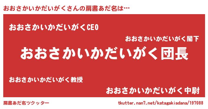 | 女子向けラノベタイトル風あだ名 | 『おおさかいかだいがく様がみてる』 |