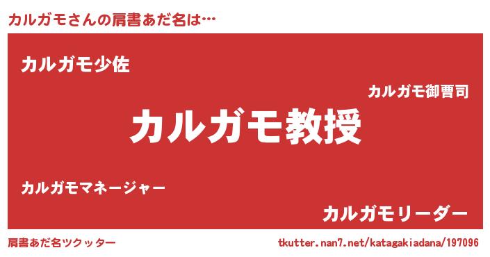 | ヒーロー風カッコイイあだ名 | 『慈愛の使者カルガモ』『炎刃騎士カル』 |
