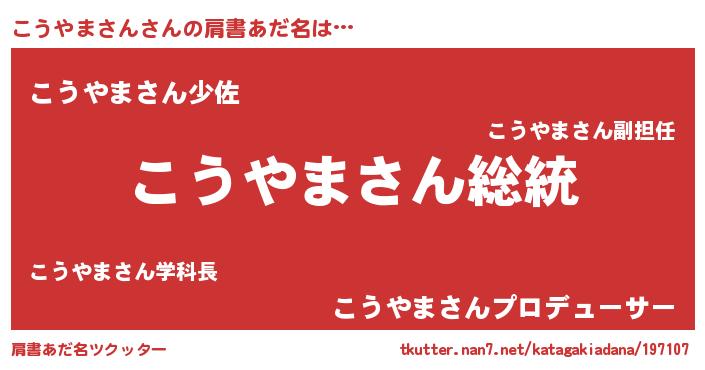 | 男性向けラノベタイトル風あだ名 | 『魔法科高校のこうやまさん』 |