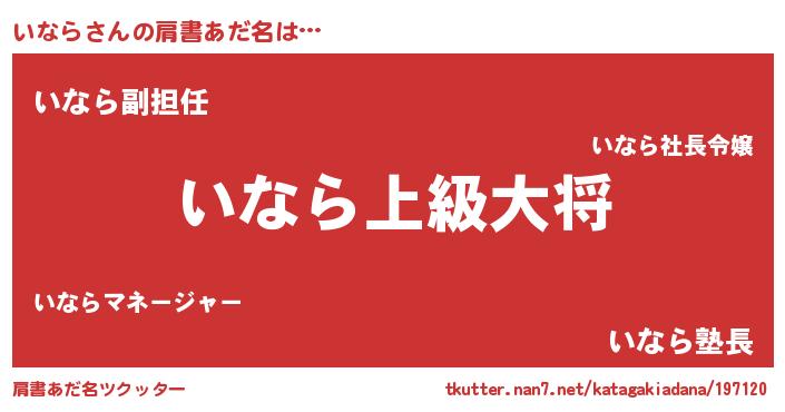 | 意味不明あだ名 | 『ニラ科いなら属』『永久保存いなら』 |
