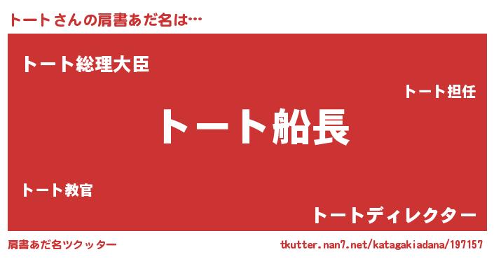 | 意味不明あだ名 | 『トートフォーエバー』『永久保存トート』 |
