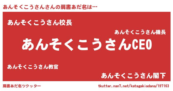 | 胡散臭い通販商品みたいなあだ名 | 『億万長者になれるブレスレット…その名も「あんそくこうさん」』 |