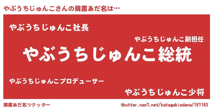| 男性向けラノベタイトル風あだ名 | 『Re:やぶうちじゅんこから始める異世界生活』 |
