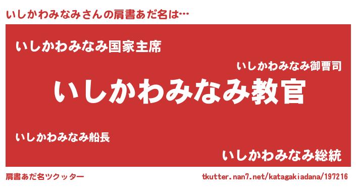 | 意味不明あだ名 | 『住所不定無職いしかわみなみ(65歳)』 |
