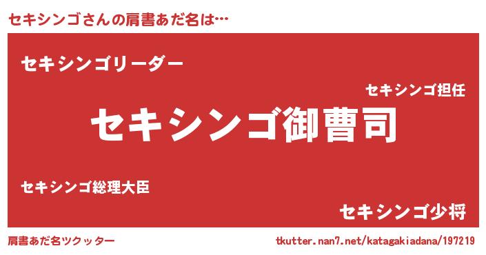 | 男性向けラノベタイトル風あだ名 | 『セキシンゴの憂鬱』 |