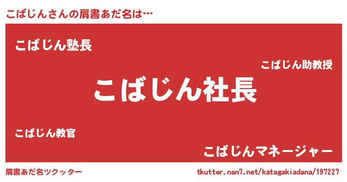 | 男性向けラノベタイトル風あだ名 | 『こばじんの憂鬱』『魔弾の王とこばじん』 |