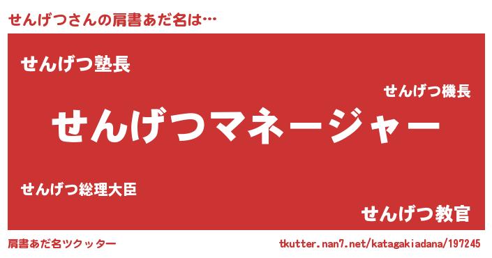 | ポケモン風あだ名 | 『センゴンZ』『ヒセンゲツ』 |