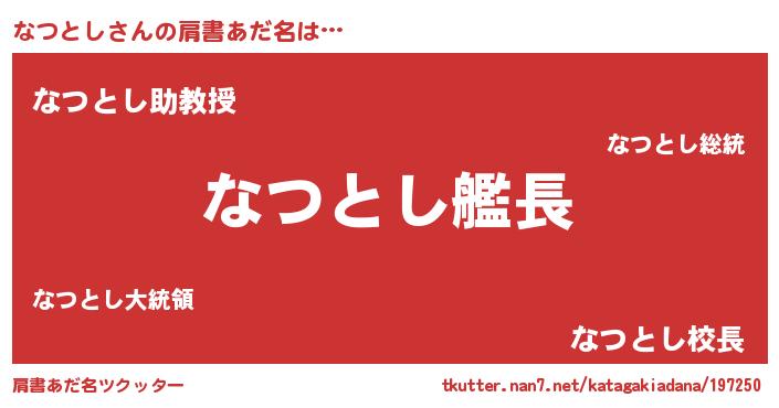 | 欧米人風あだ名 | 『なつとし・ステッグマイヤー』 |