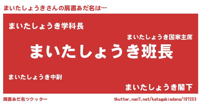 | 意味不明あだ名 | 『とにかく怪しいまいたしょうき』 |