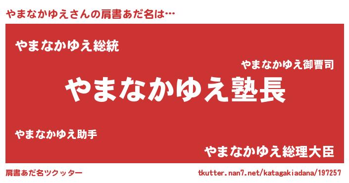 | 男性向けラノベタイトル風あだ名 | 『やまなかゆえの嫁は女の子じゃないと思った?』 |