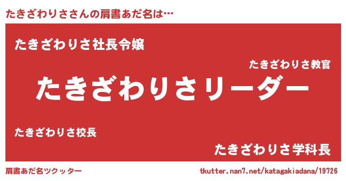 | 女子向けラノベタイトル風あだ名 | 『たきざわりさの卵を拾いまして』 |