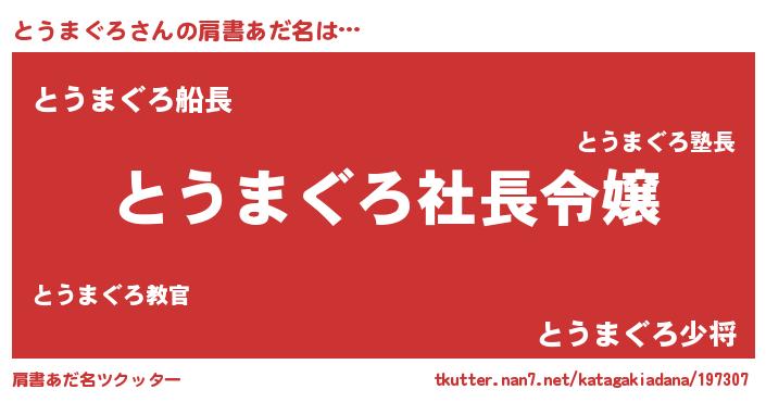 | 男性向けラノベタイトル風あだ名 | 『トウマグロアートオンライン』 |