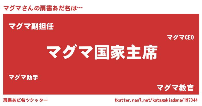 | 女子向けラノベタイトル風あだ名 | 『マグマの雑貨屋さん』『マグマ恋絵巻』 |